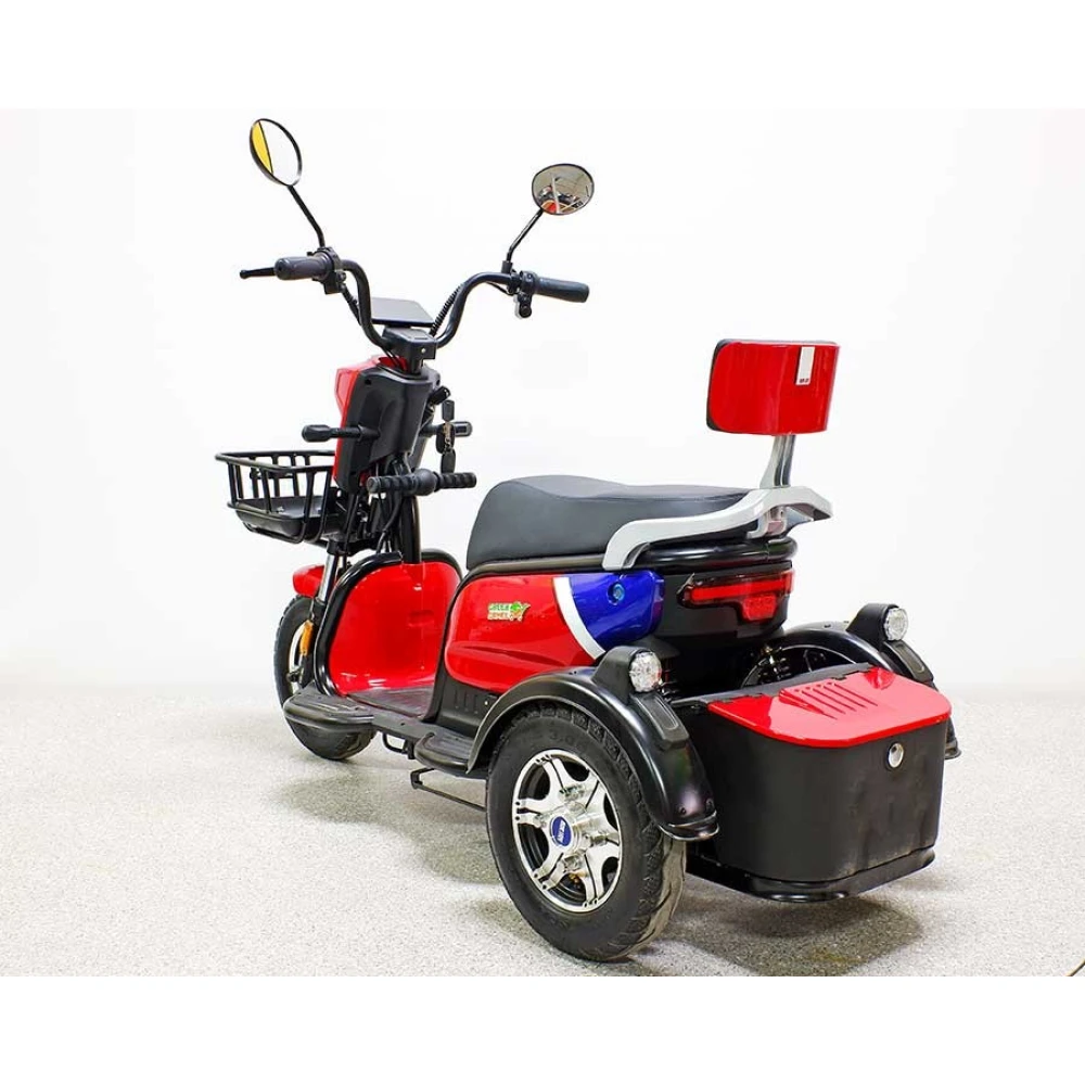 Трицикл GreenCamel Фродо Q2 (60V 500W) Trike дифференциал, красного цвета – стильная модель по приятной цене. Прочная конструкция трицикла рассчитана на максимальную грузоподъемность и подойдет для взрослых пользователей. Техника прекрасно подойдет для работы на садовом участке или перевозки грузов в складских помещениях, на ней приятно будет прокатиться по городской местности.