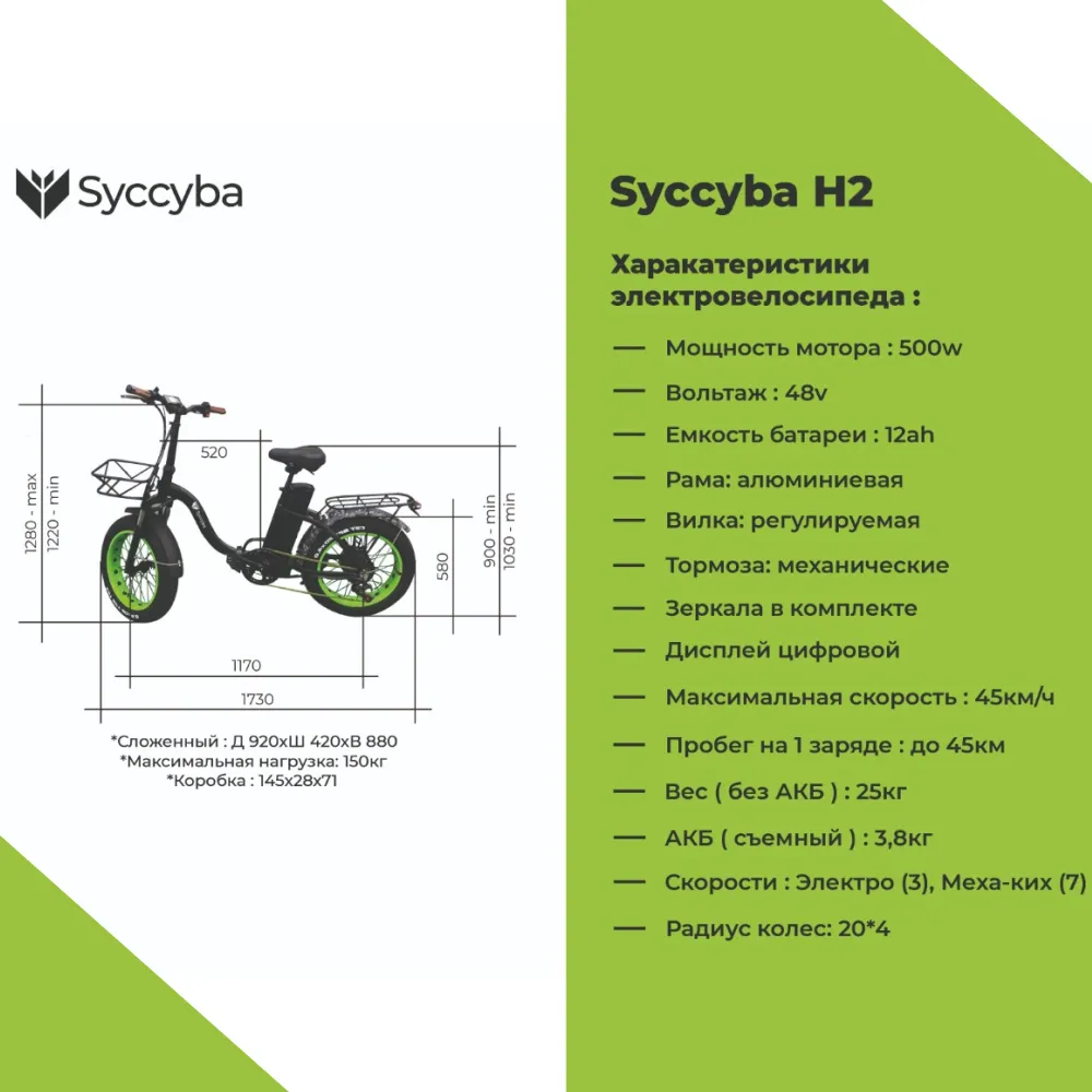 Электровелосипед Syccyba H2 RED